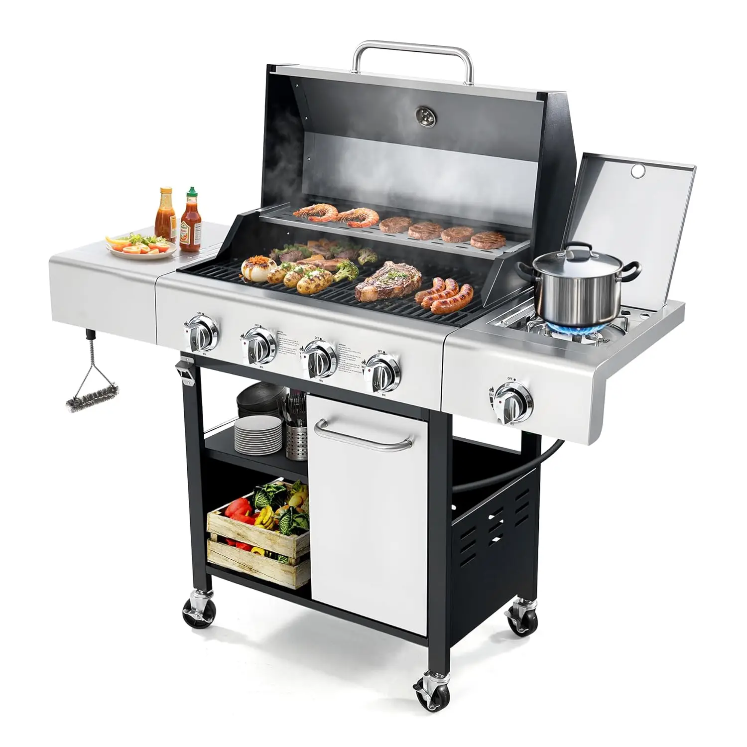 - Side burner: perfect for sauces, sides, or boiling water